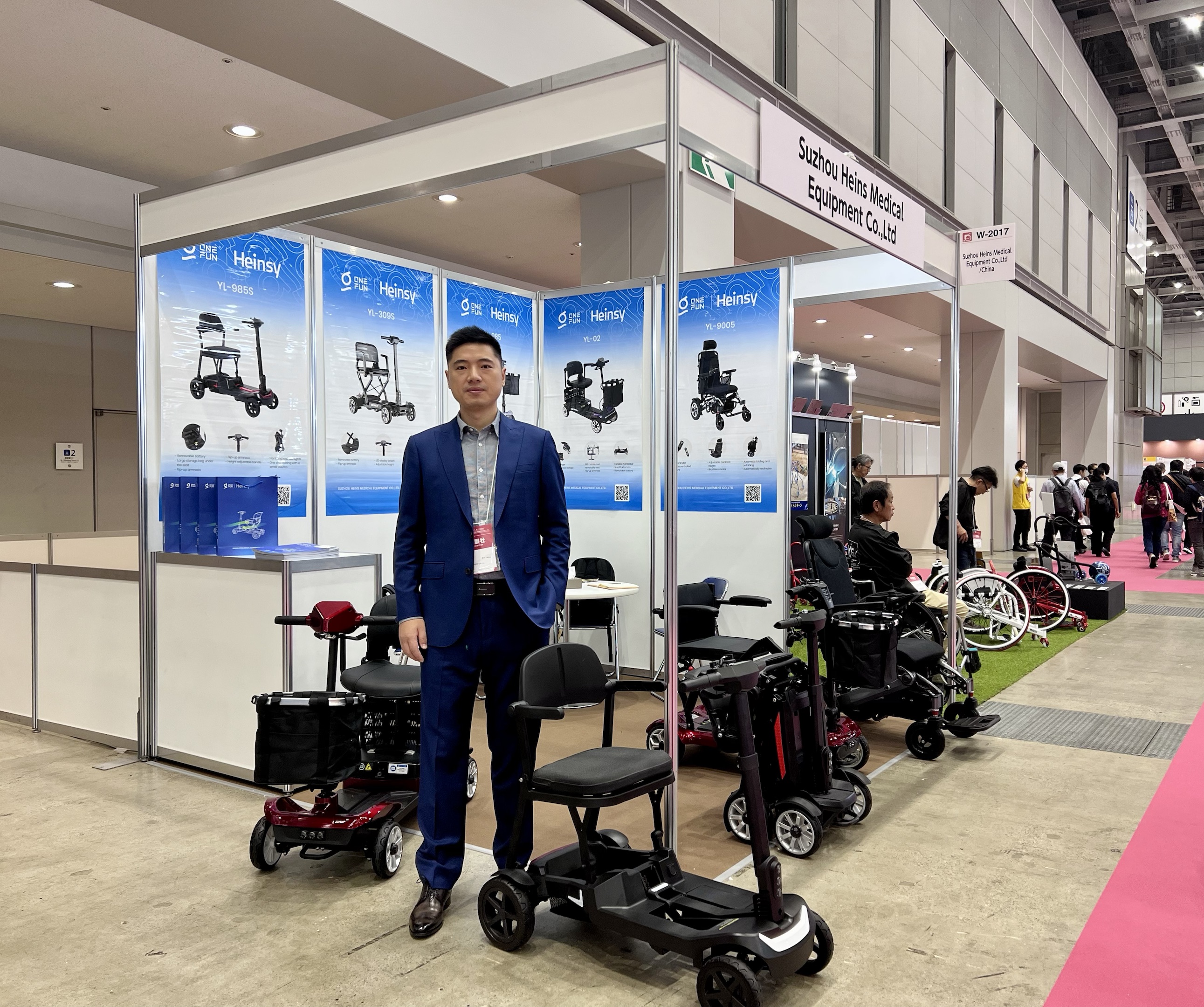 Tokio, 8 de octubre de 2025—La 52.ª Exposición y Foro Internacional de Equipos de Bienestar Social (H.C.R. 2025) se inauguró grandiosamente hoy en los pabellones Oeste y Sur de Tokyo Big Sight. Suzhou Heins Medical Equipment Co., Ltd. (marca: Heinsy) exhibió sus productos principales (scooters eléctricos y sillas de ruedas eléctricas) en el stand W-2017. Su tecnología innovadora y su diseño fácil de usar atrajeron a numerosos expositores, compradores y expertos de la industria internacionales.